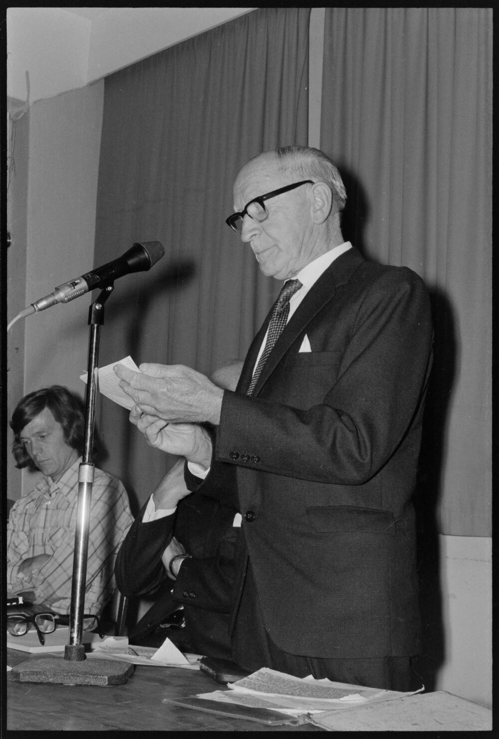 Date29 November 1973Reference NumberPhoto gcc-30663DescriptionMr J. P. Porter, one of the speakers at the anti-Brown Street meeting last night. Published 29 November 1973.FormatNegativePhysical Description35mm black-and-white negative (1/2)Photographer/CreatorBay of Plenty Times