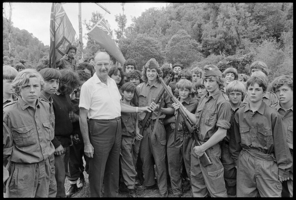 Date30 November 1973Reference NumberPhoto gcc-30680DescriptionMr H. M. Stephens (left) treasurer of Tauranga RSA branch presents the branch's gift of two .303 match competition riflesto Brian Hartley and Richard Wade, who received them on behalf of Tauranga Boys College at the cadet school. Not published 30 November 1973.FormatNegativePhysical Description35mm black-and-white negative (1/3)Photographer/CreatorBay of Plenty Times