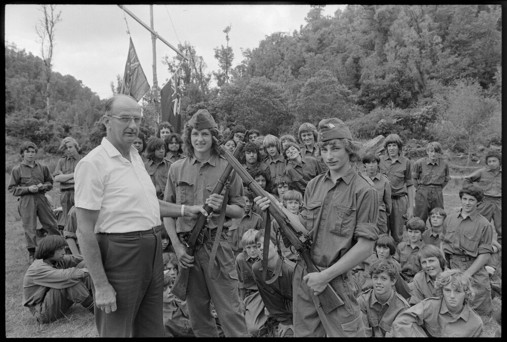 Date30 November 1973Reference NumberPhoto gcc-30682DescriptionMr H. M. Stephens (left) treasurer of Tauranga RSA branch presents the branch's gift of two .303 match competition riflesto Brian Hartley and Richard Wade, who received them on behalf of Tauranga Boys College at the cadet school. Not published 30 November 1973.FormatNegativePhysical Description35mm black-and-white negative (3/3)Photographer/CreatorBay of Plenty Times