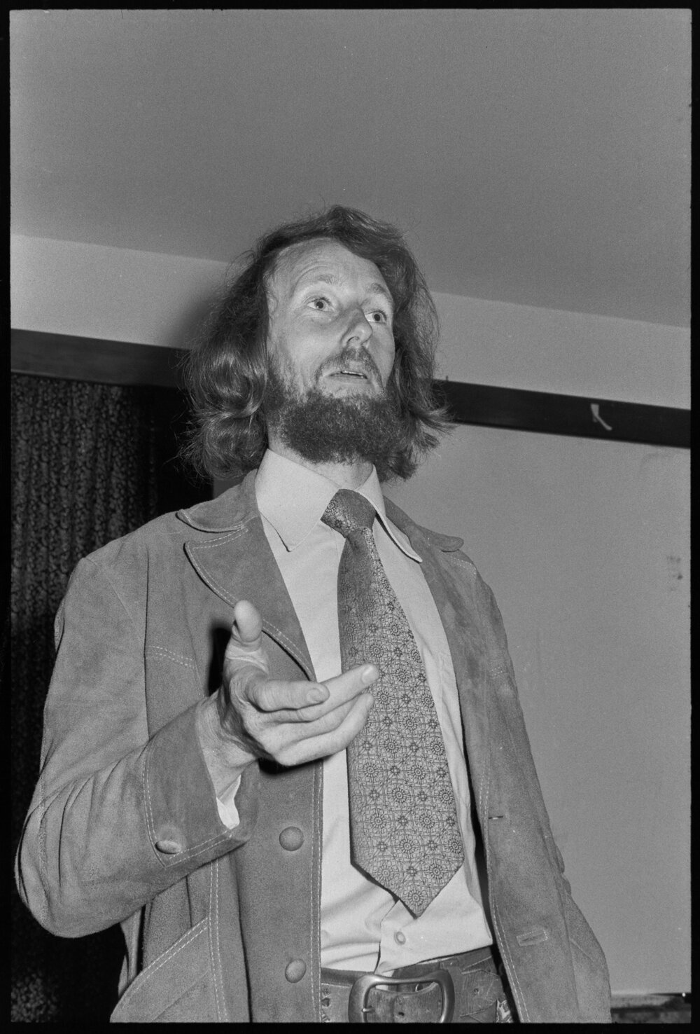 Date5 December 1973Reference NumberPhoto gcc-30742DescriptionMountaineer, Graeme Dingle, who hopes to reach new heights in a coast to coast journey and plans to cross the Southern Alps in a hot-air balloon. Published 5 December 1973.FormatNegativePhysical Description35mm black-and-white negative (1/3)Photographer/CreatorBay of Plenty Times