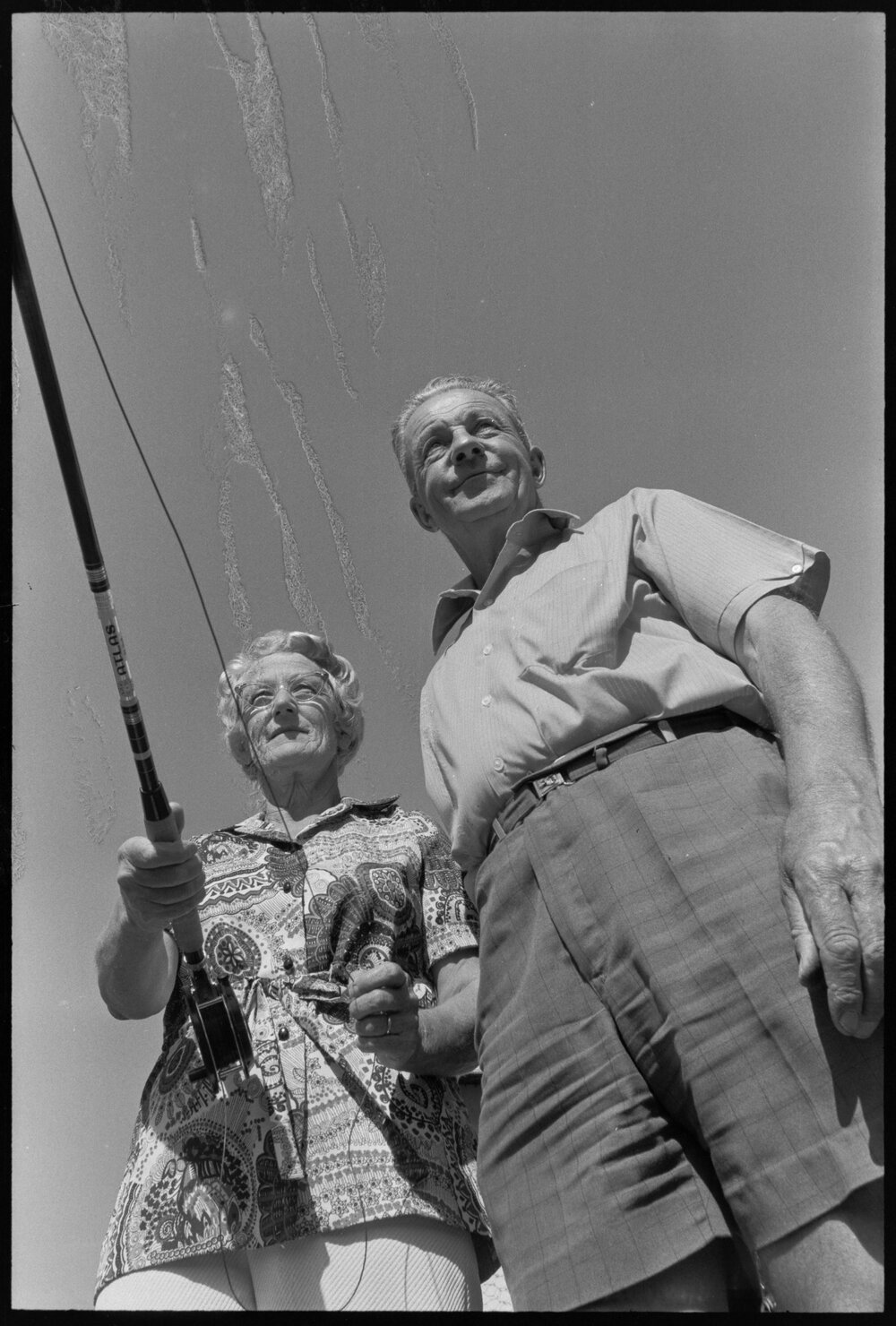 Date7 December 1973Reference NumberPhoto gcc-30766DescriptionMrs Joan Batchelor,with husband George, is one of two women who had the heaviest catch - an 8lb 14oz brown trout. Published 7 December 1973.FormatNegativePhysical Description35mm black-and-white negative (1/3)Photographer/CreatorBay of Plenty Times