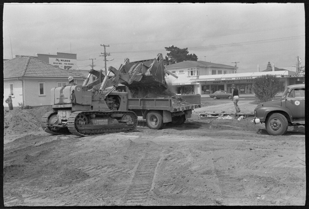 Date7 December 1973Reference NumberPhoto gcc-30778DescriptionWork starting on clearing up the municipal car park site at Mount Maunganui. Published December 1973.FormatNegativePhysical Description35mm black-and-white negative (1/3)Photographer/CreatorBay of Plenty Times