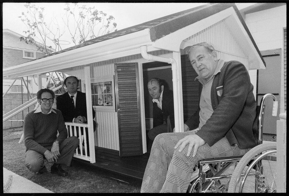 Date19 September 1975Reference Numberphoto gcc-35099DescriptionMr J.G McAllister won a house for his daughters. From left are Messrs R.G. Nix, the builder, R. W. Sutherland, president of the Tauranga Lions Lub and D.J. Moore, vice-president of the Western Bay of Plenty Paraplegic and Physically Disabled Association. Published 19 September 1975FormatNegativePhysical Description35mm black-and-white negative (1/3)Photographer/CreatorBay of Plenty Times