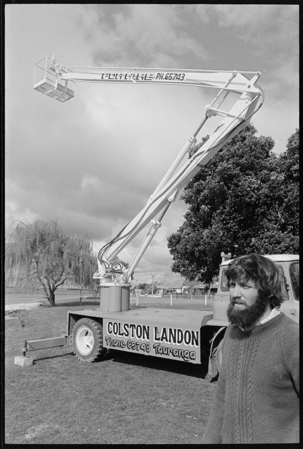 Date19 September 1975Reference Numberphoto gcc-35107DescriptionTauranga marine engineer Mr. Colston Langdon built hydraulic elevating platform on the back of a bedford truck. Published 19 September 1975FormatNegativePhysical Description35mm black-and-white negative (3/5)Photographer/CreatorBay of Plenty Times