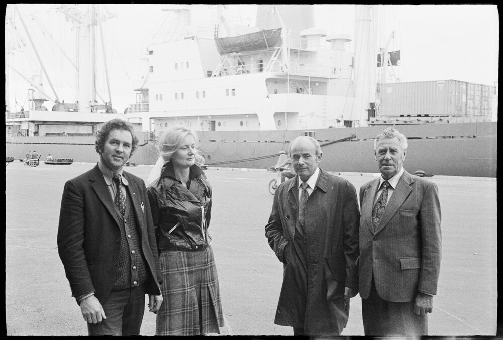 Date20 September 1975Reference Numberphoto gcc-35149DescriptionTwo Polish dairy inspectors visit Mount Maunganui. From left are Mr Ian Jamieson, the Dairy Board inspector in Mount Maunganui, Mrs Jagwida Urbanska, Mr Franciszek Dorczak and Mr Jack Valder, plant superintendent. In the background is the freighter Mayfield on which the first part of the 4500 tonne order butter is being loaded. Published 20 September 1975FormatNegativePhysical Description35mm black-and-white negative (2/3)Photographer/CreatorBay of Plenty Times