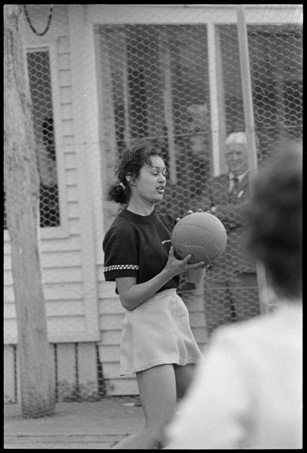 Date22 September 1975Reference Numberphoto gcc-35178DescriptionTerangi Little plays in the New Zealand Post Office netball tournament. Published 22 September 1974FormatNegativePhysical Description35mm black-and-white negative (1/3)Photographer/CreatorBay of Plenty Times