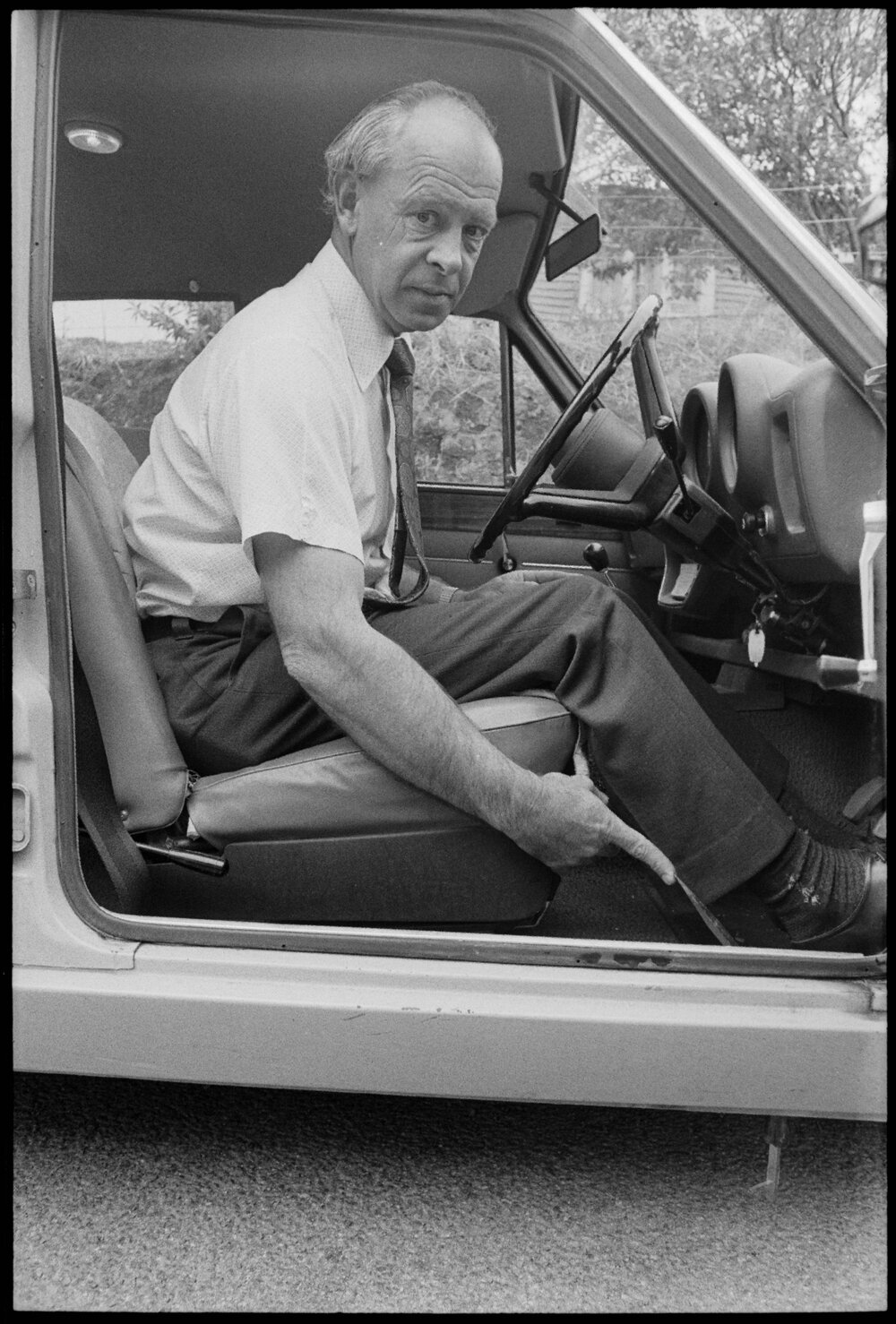 Date22 September 1975Reference Numberphoto gcc-35187DescriptionMr Ray Hampton demonstrates how a screwdriver came through the floor of his car whilst he was driving. Published 22 September 1975.FormatNegativePhysical Description35mm black-and-white negative (1/6)Photographer/CreatorBay of Plenty Times