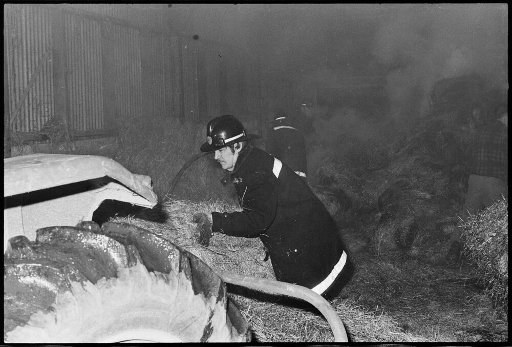 Date24 September 1975Reference Numberphoto gcc-35263DescriptionRescuing bales with a tractor as firefighters, using water from a farm tank, fight a fire in a hay barn at a L. J. Warner's farm in Belk Road, Tauriko. Published 24 September 1976FormatNegativePhysical Description35mm black-and-white negative (5/5)Photographer/CreatorBay of Plenty Times