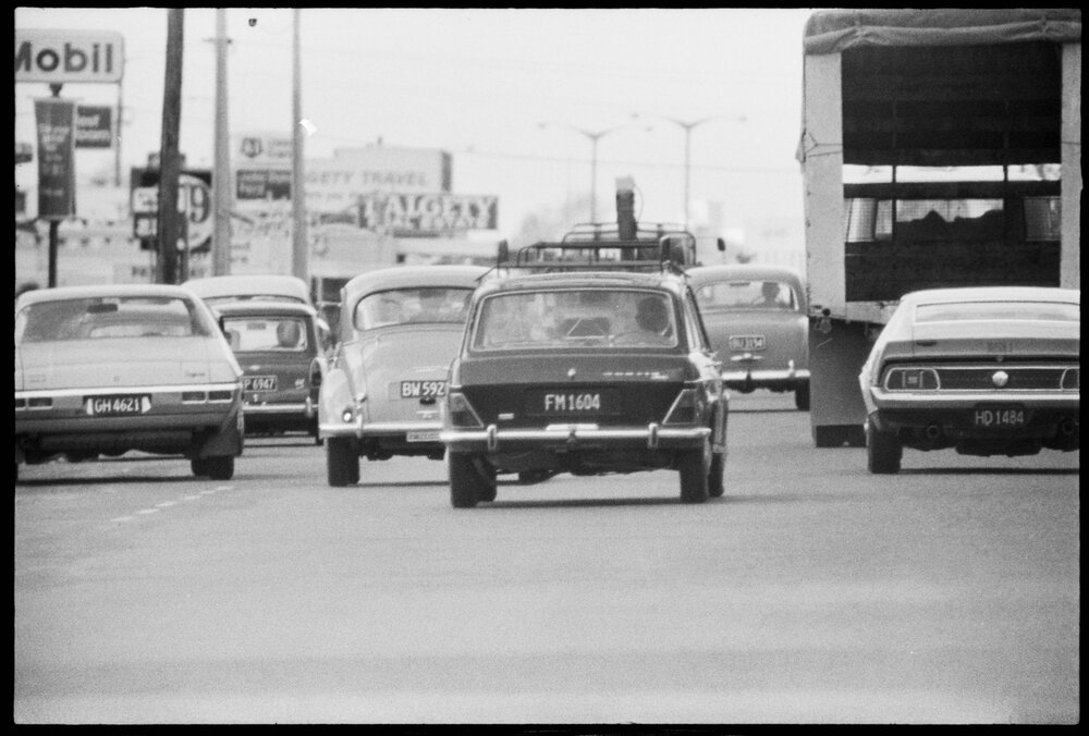 Date27 September 1975Reference Numberphoto gcc-35360DescriptionCameron Road traffic showing the road from the recently installed traffic lights at 15th Avenue to the lights at 11th Avenue. Published 27 September 1975.FormatNegativePhysical Description35mm black-and-white negative (2/9)Photographer/CreatorBay of Plenty Times