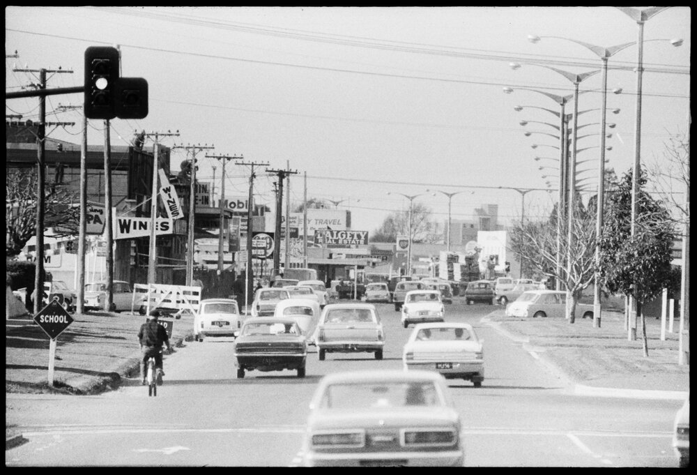 Date27 September 1975Reference Numberphoto gcc-35364DescriptionCameron Road traffic showing the road from the recently installed traffic lights at 15th Avenue to the lights at 11th Avenue. Published 27 September 1975.FormatNegativePhysical Description35mm black-and-white negative (6/9)Photographer/CreatorBay of Plenty Times