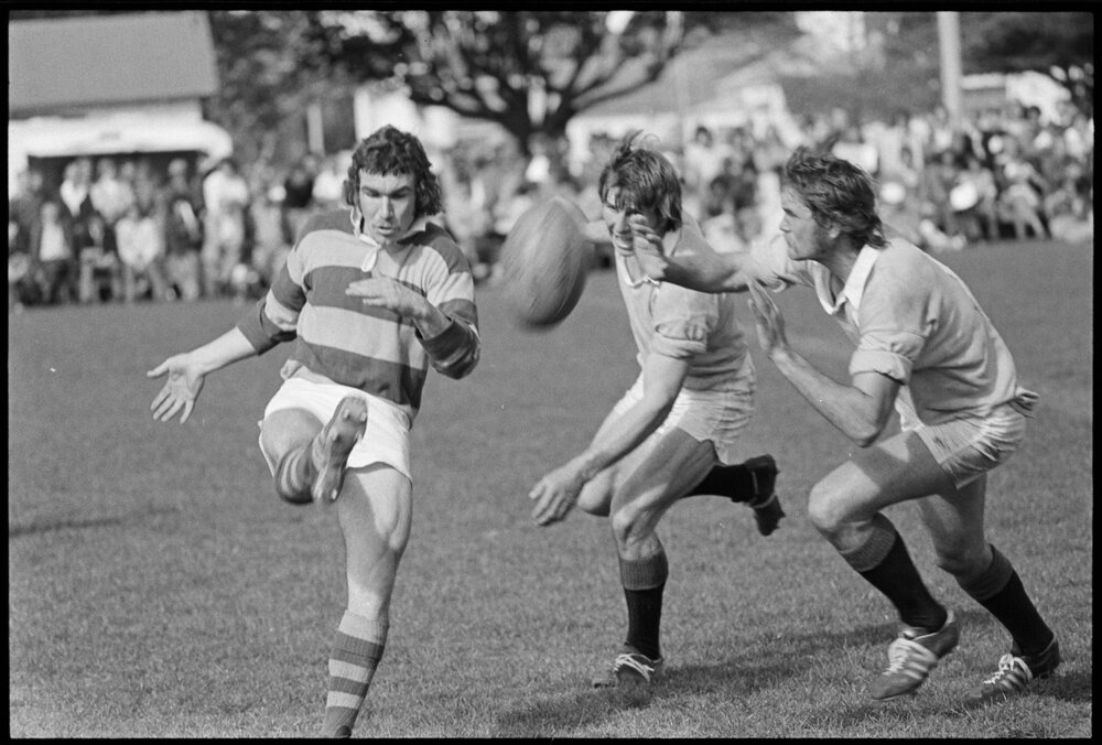 Date29 September 1975Reference Numberphoto gcc-35387DescriptionThe Bay of Plenty five-eighths John Brake, clears the ball as the North Auckland loosemen Rod Macdonald and Harley Sowman arrive. Bay of Plenty vs North Auckland Under-21s Rugby match at theTauranga Domain. Published 29 September 1975.FormatNegativePhysical Description35mm black-and-white negative (3/3)Photographer/CreatorBay of Plenty Times