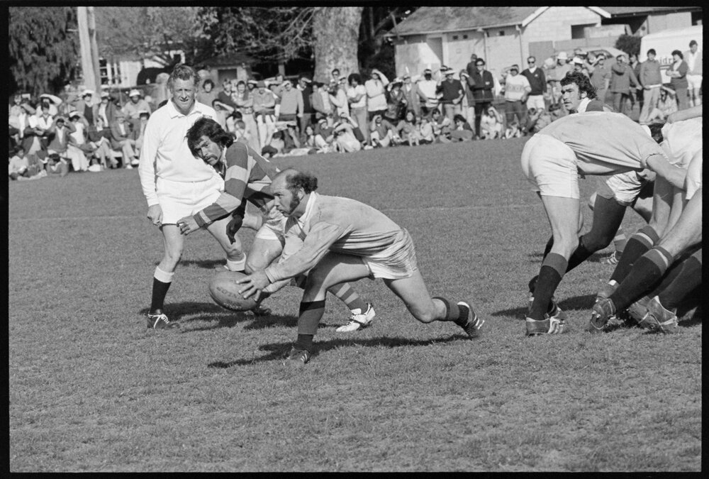 Date29 September 1975Reference Numberphoto gcc-35392DescriptionNorth Auckland's Sid Going passes the ball, with Bay of Plenty halfback, Teddy Davis on his way. The Bay of Plenty vs North Auckland Under-21s Rugby match at the Tauranga Domain. Published 29 September 1975.FormatNegativePhysical Description35mm black-and-white negative (2/3)Photographer/CreatorBay of Plenty Times