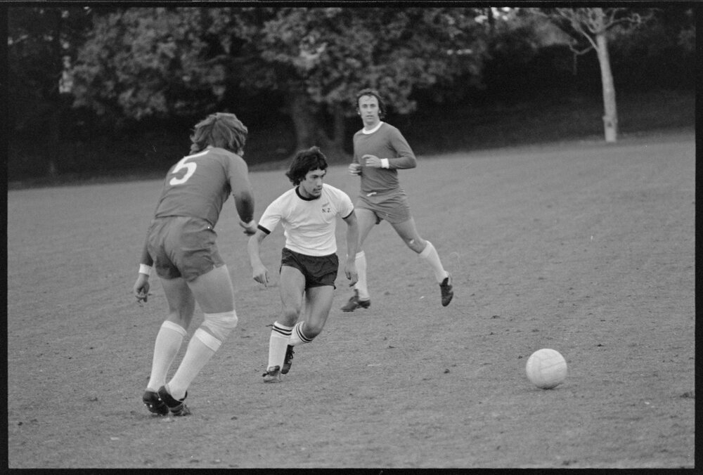Date2 October 1975Reference Numberphoto gcc-35511DescriptionSoccer, New Zealand Under 21s, vs Bay of Plenty at the Wharepai Domain. Published 2 October 1975.FormatNegativePhysical Description35mm black-and-white negative (2/3)Photographer/CreatorBay of Plenty Times