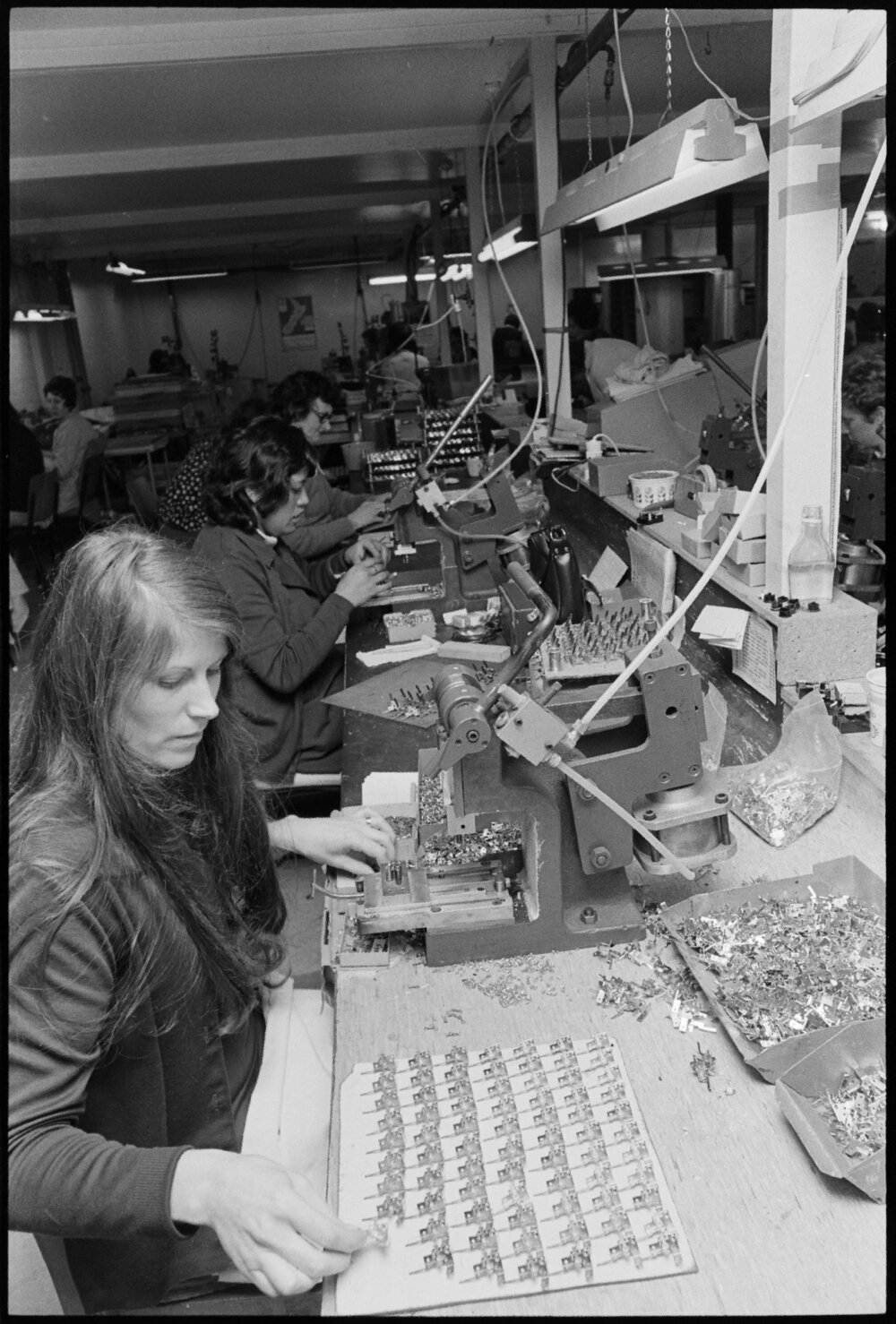 Date2 October 1975Reference Numberphoto gcc-35543DescriptionWorkers at assembly line making element thermostats at New Zealand Controls in Hull Road, Mount Maunganui. Published 2 October 1975FormatNegativePhysical Description35mm black-and-white negative (1/6)Photographer/CreatorBay of Plenty Times