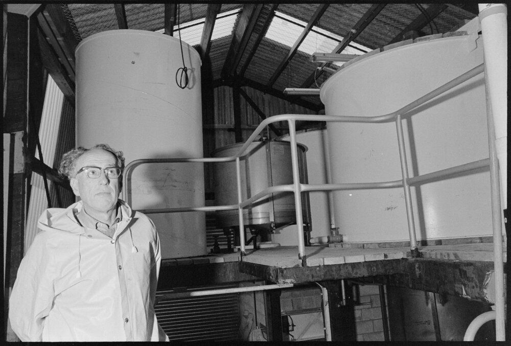 Date2 October 1975Reference Numberphoto gcc-35549DescriptionMr F. Waanders, chemist at Dominion Salt plant on Tōtara Street at Mount Maunganui, inspects the treated brine in the clarifier tank. Published 2 October 1975FormatNegativePhysical Description35mm black-and-white negative (1/9)Photographer/CreatorBay of Plenty Times