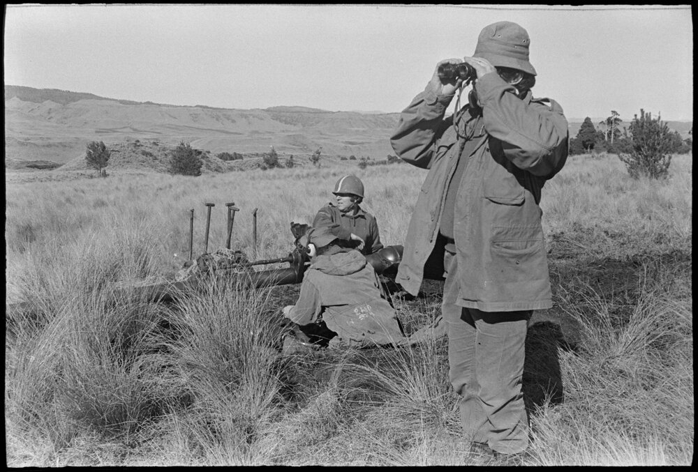 Date4 October 1975Reference Numberphoto gcc-35588DescriptionTerritorial Sergeant T. Dean looking through binoculars. A defence exercise at Waiouru for 140 Bay of Plenty territorial soldiers involved a night camping in the snow. Published 4 October 1975.FormatNegativePhysical Description35mm black-and-white negative (3/3)Photographer/CreatorBay of Plenty Times