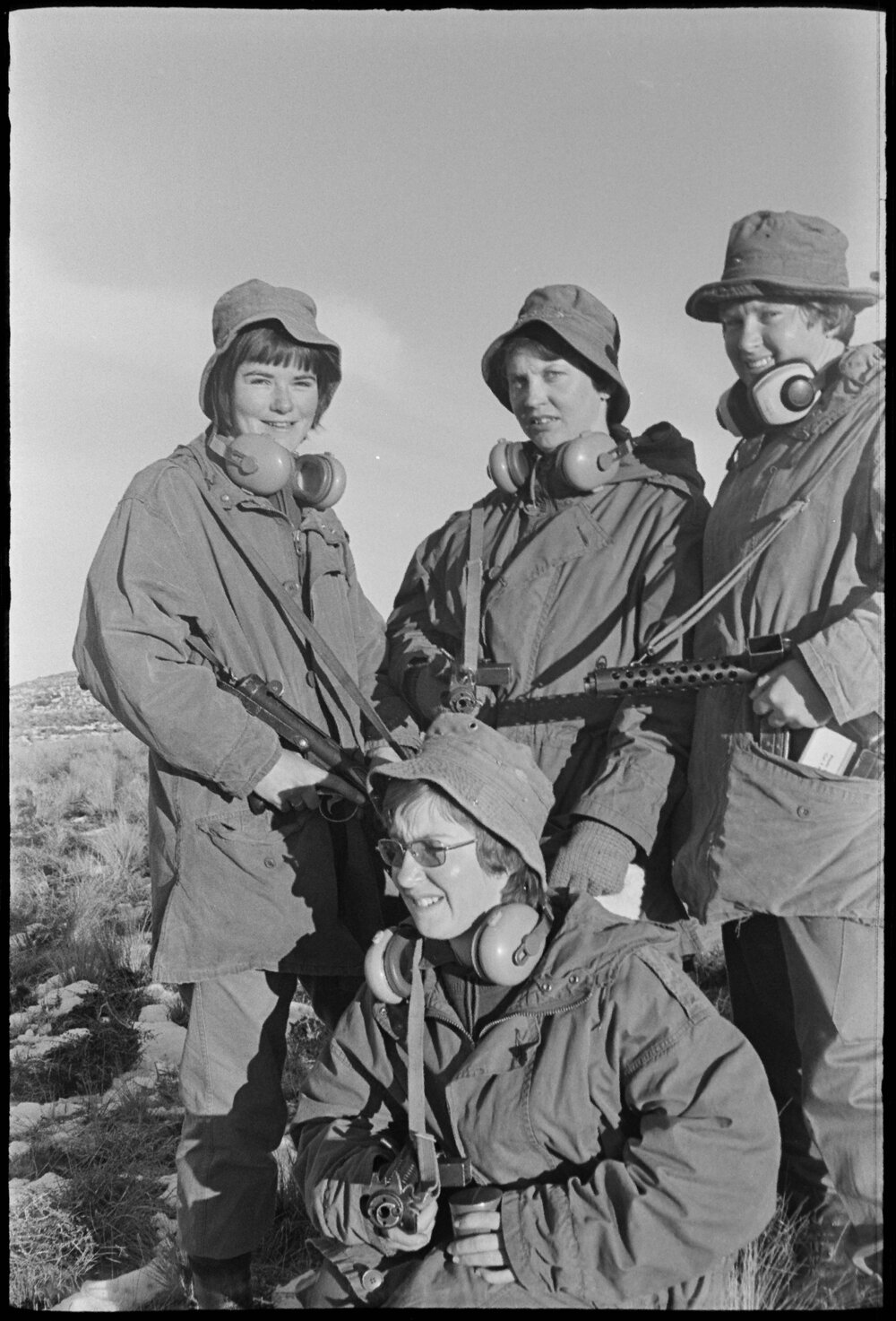 Date4 October 1975Reference Numberphoto gcc-35596DescriptionTerritorial From Left, Elizabeth Partridge, Millie Conroy, Susan Crawford, and front, Bernadine Philpott. A defence exercise at Waiouru for 140 Bay of Plenty territorial soldiers involved a night camping in the snow. Published 4 October 1975.FormatNegativePhysical Description35mm black-and-white negative (2/3)Photographer/CreatorBay of Plenty Times