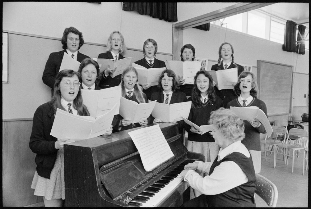 Date4 October 1975Reference Numberphoto gcc-35598DescriptionTauranga Girls College students practise for their performance with the Cantable Singers of 'Carmina Burana'. Published 4 October 1975FormatNegativePhysical Description35mm black-and-white negative (1/12)Photographer/CreatorBay of Plenty Times