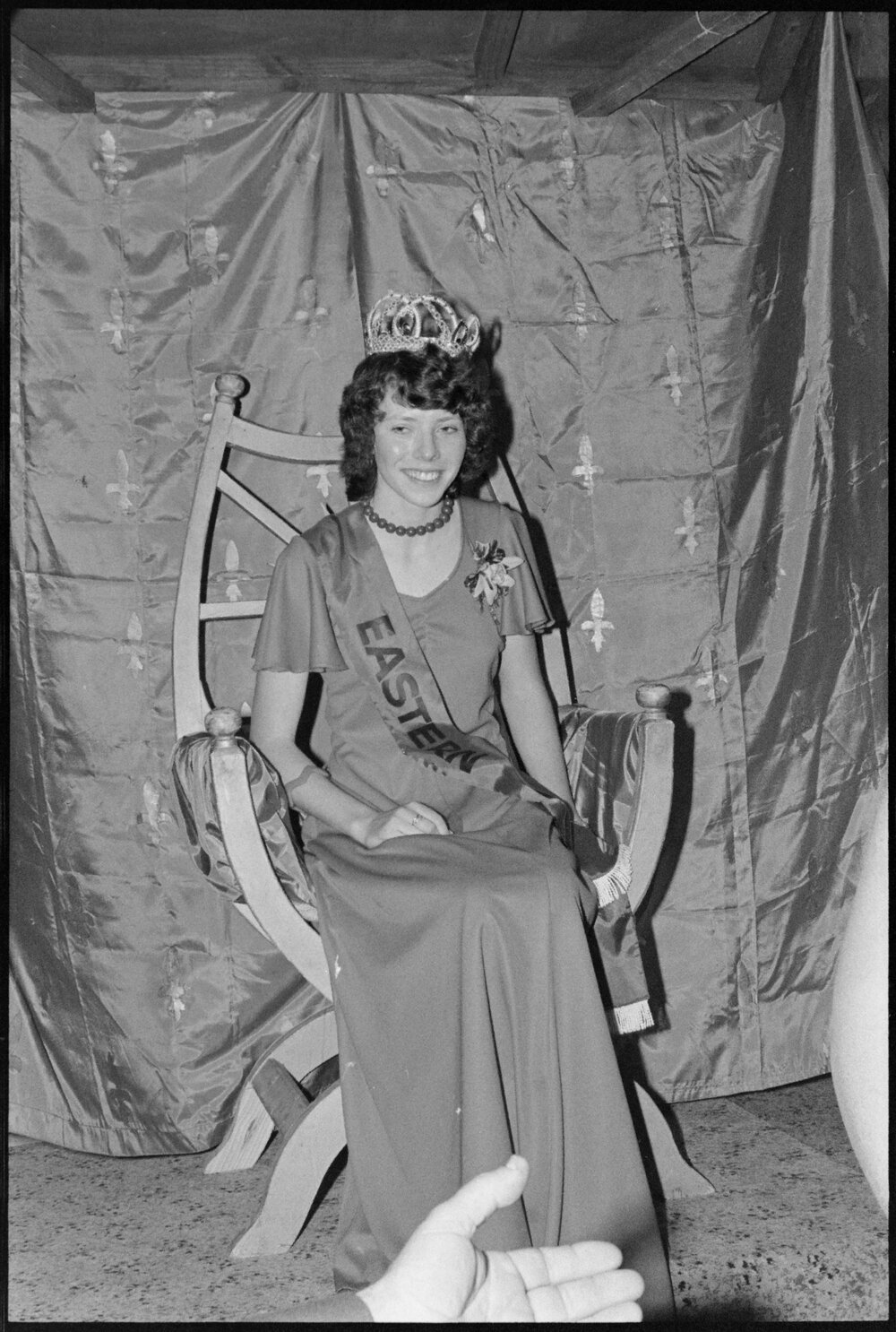 Date6 October 1975Reference Numberphoto gcc-35640DescriptionTe Puke's Bronwyn Marsh is crowned 'Eastern Princess' by Te Puke Mayoress, Mrs Ian Johnson, at the Te Puke Service Club's Coronation Ball. Published 6 October 1975FormatNegativePhysical Description35mm black-and-white negative (4/7)Photographer/CreatorBay of Plenty Times