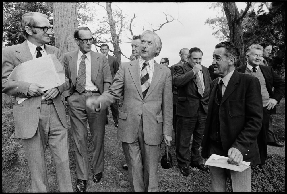 Date7 October 1975Reference Numberphoto gcc-35675DescriptionGroup walks on the five acres of land at Ōmokoroa Point to be known as the Gerald Crapp Historic Reserve, given to the public by Mr G. Crapp. Mr Turley (centre) with Mr J.P. Cooney at left, and Mrs J.V. Crapp and Mr. D.S. Cooney. Published October 1975FormatNegativePhysical Description35mm black-and-white negative (5/20)Photographer/CreatorBay of Plenty Times