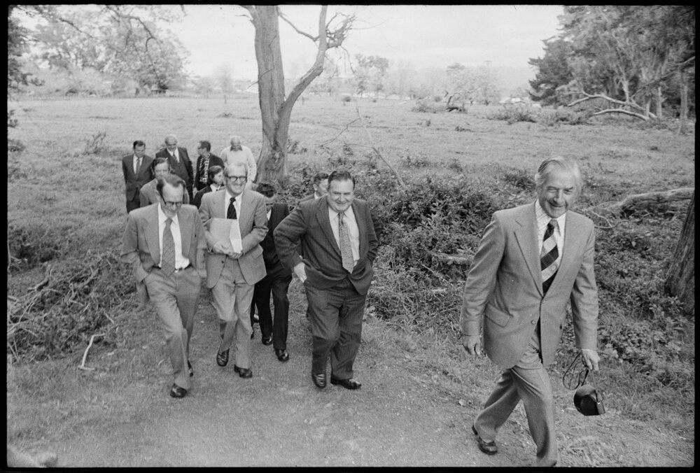Date7 October 1975Reference Numberphoto gcc-35682DescriptionGroup walks on the five acres of land at Ōmokoroa Point to be known as the Gerald Crapp Historic Reserve, given to the public by Mr G. Crapp. Mr Turley (centre) with Mr J.P. Cooney at left, and Mrs J.V. Crapp and Mr. D.S. Cooney. Published October 1975FormatNegativePhysical Description35mm black-and-white negative (12/20)Photographer/CreatorBay of Plenty Times