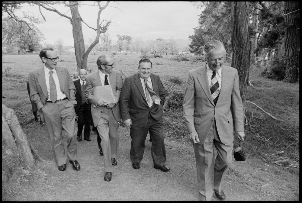 Date7 October 1975Reference Numberphoto gcc-35683DescriptionGroup walks on the five acres of land at Ōmokoroa Point to be known as the Gerald Crapp Historic Reserve, given to the public by Mr G. Crapp. Mr Turley (centre) with Mr J.P. Cooney at left, and Mrs J.V. Crapp and Mr. D.S. Cooney. Published October 1975FormatNegativePhysical Description35mm black-and-white negative (13/20)Photographer/CreatorBay of Plenty Times