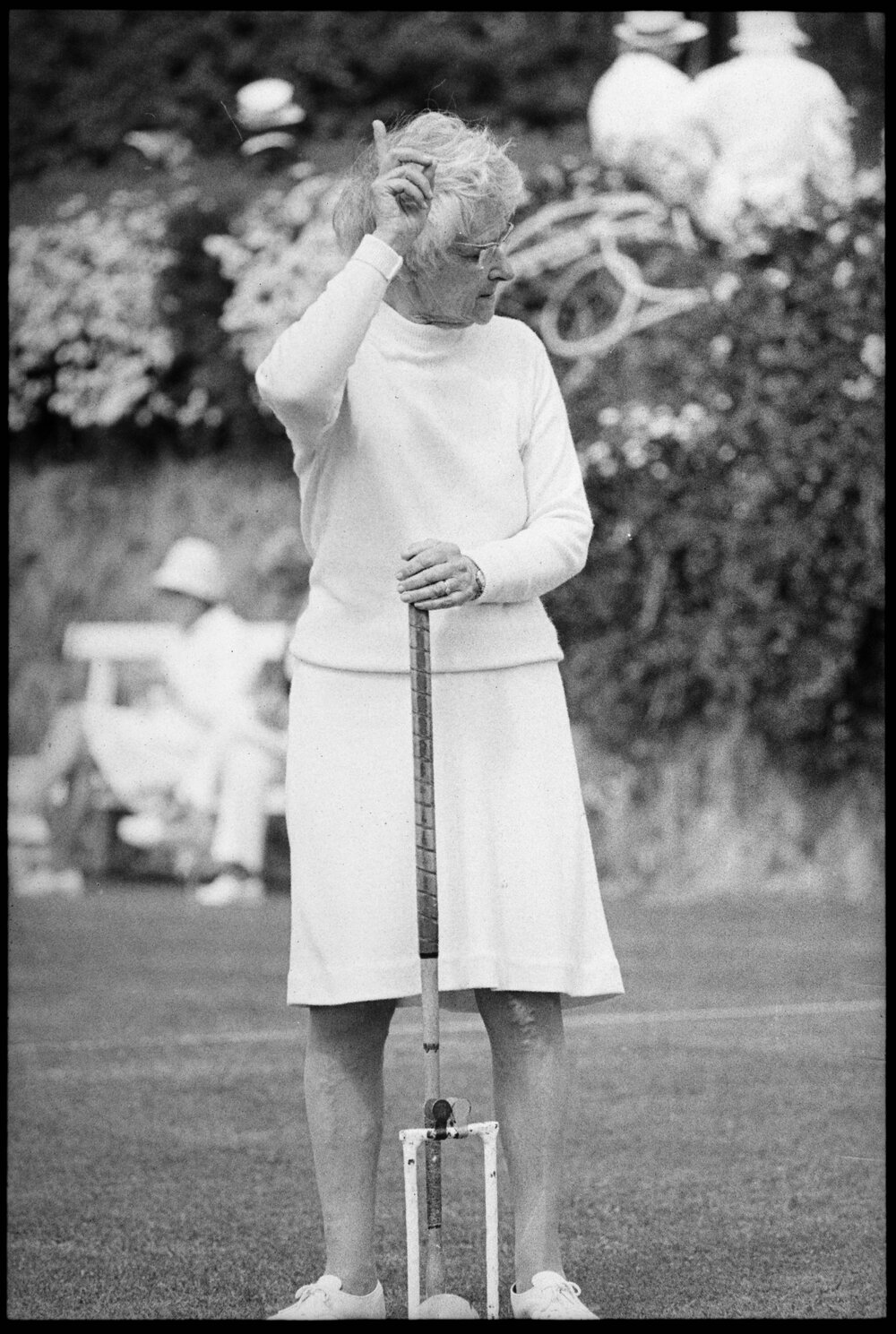 Date8 October 1975Reference Numberphoto gcc-35730DescriptionMrs A. McConnell, of Thames Valley, lining up a croquet shot under the scrutiny of the umpire, Mrs H. Nichols. Published 8 October 1975.FormatNegativePhysical Description35mm black-and-white negative (1/9)Photographer/CreatorBay of Plenty Times
