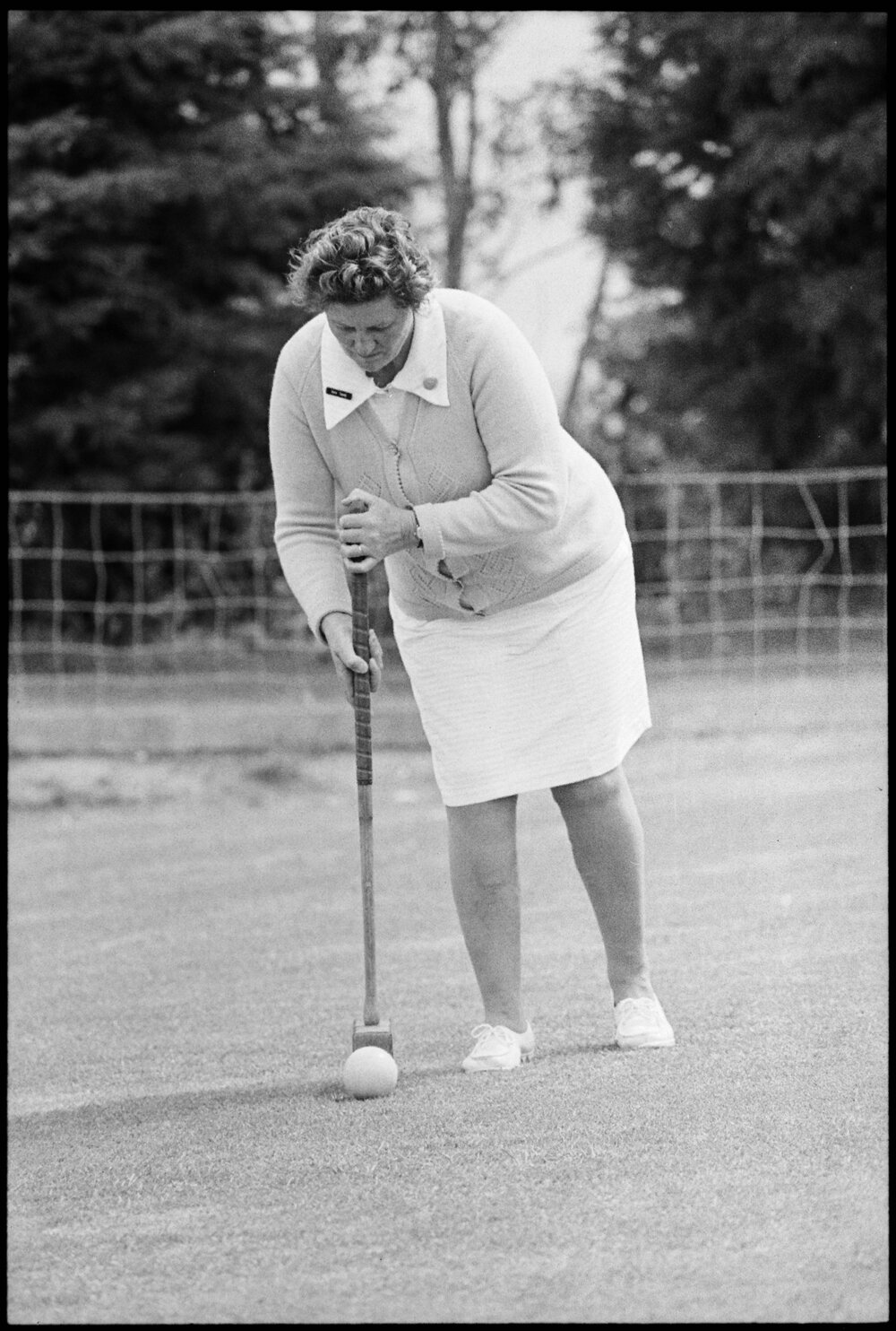 Date8 October 1975Reference Numberphoto gcc-35733DescriptionCroquet player takes a shot. Published 8 October 1975.FormatNegativePhysical Description35mm black-and-white negative (4/9)Photographer/CreatorBay of Plenty Times