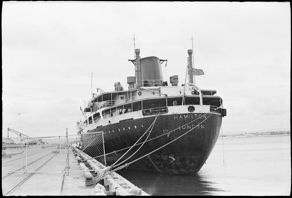Date9 October 1975Reference Numberphoto gcc-35798DescriptionThe tanker Hamilton berthed at the port of tongue early today one of the best known vessels around the port she has been calling here for eight years. Published 9 October 1975FormatNegativePhysical Description35mm black-and-white negative (1/1)Photographer/CreatorBay of Plenty Times