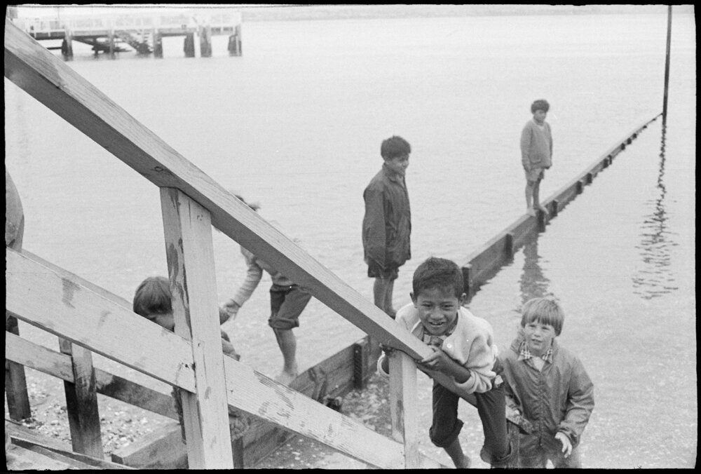 Date11 October 1975Reference Numberphoto gcc-35847DescriptionJunior pupils from Bethlehem School climb over railings on the steps leading down to Pilot Bay during a class trip to Mount Maunganui. Teacher in charge was Mrs A. Lockett. Published 11 October 1975.FormatNegativePhysical Description35mm black-and-white negative (2/6)Photographer/CreatorBay of Plenty Times