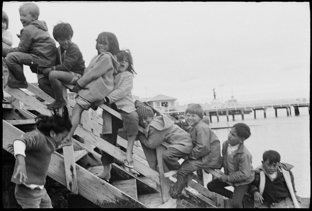 Date11 October 1975Reference Numberphoto gcc-35849DescriptionJunior pupils from Bethlehem School climb over railings on the steps leading down to Pilot Bay during a class trip to Mount Maunganui. Teacher in charge was Mrs A. Lockett. Published 11 October 1975.FormatNegativePhysical Description35mm black-and-white negative (4/6)Photographer/CreatorBay of Plenty Times