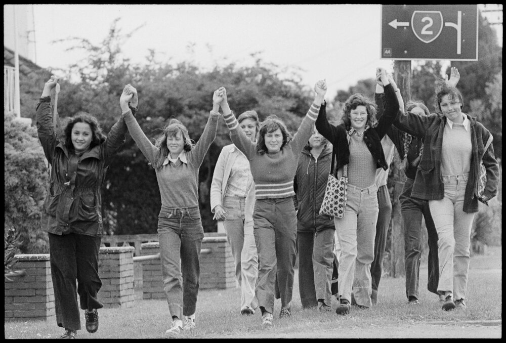 Date11 October 1975Reference Numberphoto gcc-35872DescriptionNine Tauranga Girls' College third-form pupils at the Hairini causeway, setting out on a walkathon to the foot of Mount Maunganui. The trek was planned to raise money for the proposed Regional Arts and Community Centre in Tauranga. Published 11 October 1975.FormatNegativePhysical Description35mm black-and-white negative (1/6)Photographer/CreatorBay of Plenty Times