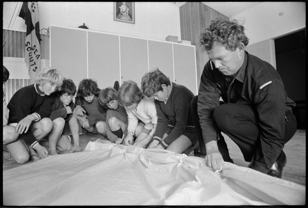 Date13 October 1975Reference Numberphoto gcc-35881DescriptionSailing instructor Peter Bray points out how to reef down a mainsail during the Bay of Plenty Sea Scout training weekend held in Tauranga. Published 13 October 1975.FormatNegativePhysical Description35mm black-and-white negative (4/9)Photographer/CreatorBay of Plenty Times