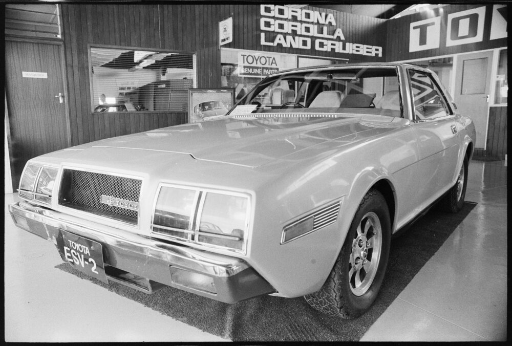 Date14 October 1975Reference Numberphoto gcc-35904DescriptionA Toyota experimental safety vehicle, Toyota ESV 2, is on display. Published 14 October 1975.FormatNegativePhysical Description35mm black-and-white negative (1/12)Photographer/CreatorBay of Plenty Times