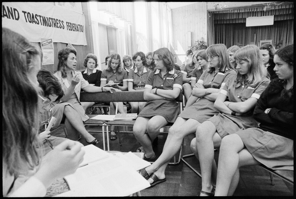 Date16 October 1975Reference Numberphoto gcc-35974DescriptionGuest speaker, Mrs Carol Gordon (left), addresses a discussion group this morning, as part of an International Women's Year forum with the theme of "Women in the World Today," featured panel discussions on subjects including "Women in the Family" and "Women in Housework." Published 16 October 1975.FormatNegativePhysical Description35mm black-and-white negative (1/8)Photographer/CreatorBay of Plenty Times