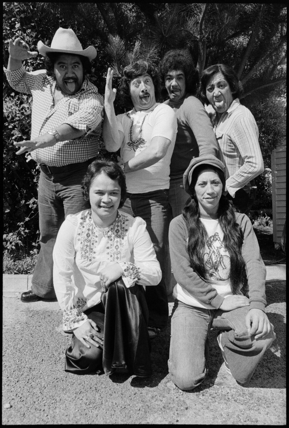 Date17 October 1975Reference Numberphoto gcc-35982DescriptionMembers of the Māori Volcanics showband pose for the camera. They are (at back from left): Bill Taitoko, Billy Peters, Malcolm Edwards and John Rangi. In front are (left) Bernadette and Mahora. Published 17 October 1975.FormatNegativePhysical Description35mm black-and-white negative (1/5)Photographer/CreatorBay of Plenty Times