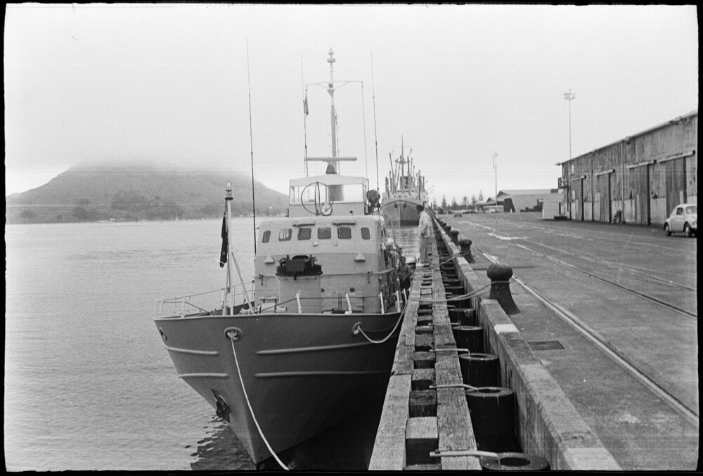 Date18 October 1975Reference Numberphoto gcc-36041DescriptionA vessel berthed at the Port of Tauranga. Published 18 October 1975.FormatNegativePhysical Description35mm black-and-white negative (5/8)Photographer/CreatorBay of Plenty Times