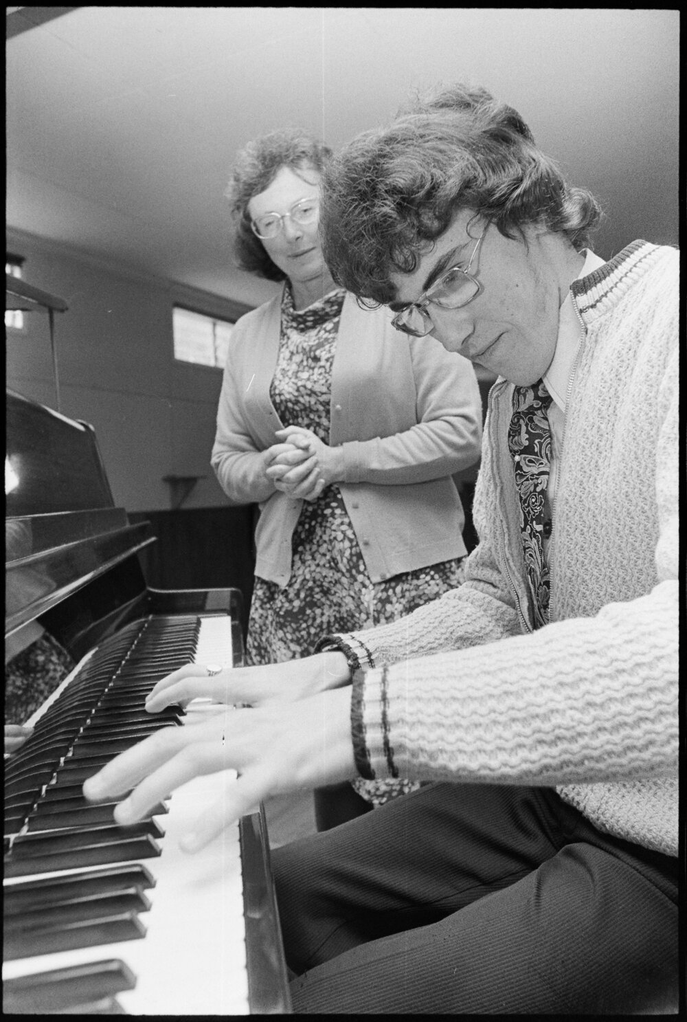 Date20 October 1975Reference Numberphoto gcc-36048DescriptionTauranga pianist, Lee Cameron, pictured with the adjudicator, Mrs Margaret Crawshaw, is the 1975 Esmer Richard Scholarship winner. Published 20 October 1975.FormatNegativePhysical Description35mm black-and-white negative (1/3)Photographer/CreatorBay of Plenty Times