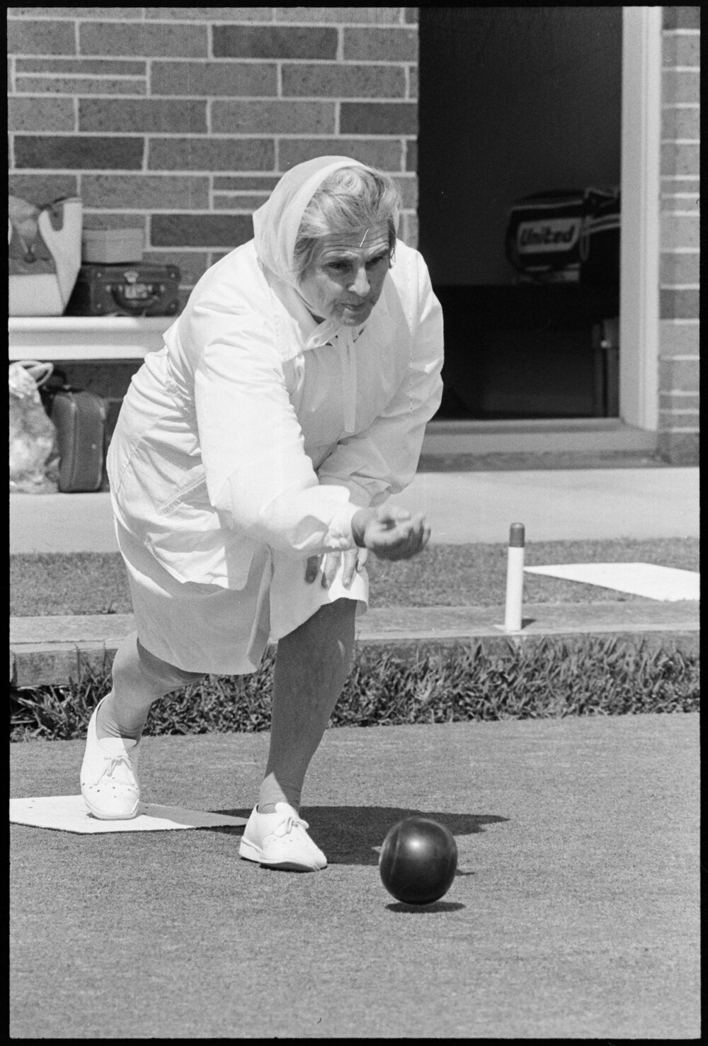 Date21 October 1975Reference Numberphoto gcc-36075DescriptionA competitor in the Bay of Plenty Centre fours lawn bowls tournament. Published 21 October 1975.FormatNegativePhysical Description35mm black-and-white negative (1/7)Photographer/CreatorBay of Plenty Times