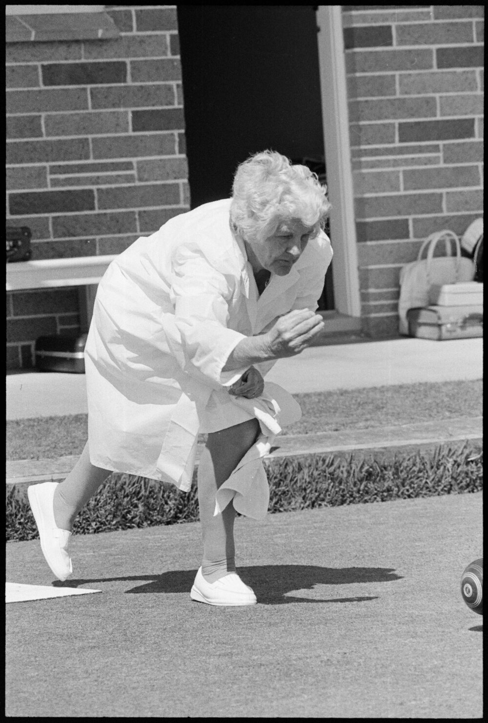 Date21 October 1975Reference Numberphoto gcc-36079DescriptionA competitor in the Bay of Plenty Centre fours lawn bowls tournament. Published 21 October 1975.FormatNegativePhysical Description35mm black-and-white negative (5/7)Photographer/CreatorBay of Plenty Times