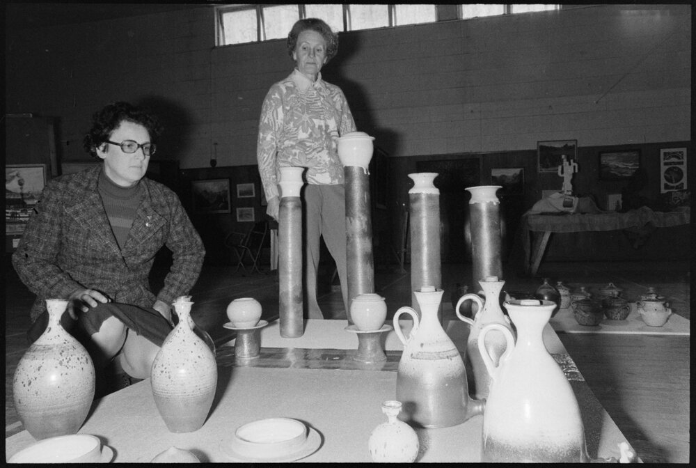 Date21 October 1975Reference Numberphoto gcc-36097DescriptionSetting up the Te Puke Art Society's annual exhibition, are Mrs F. Fraser of Te Puke (left) and Mrs R. McLeod. They are viewing some of the work of Pukehina potter Flor Roggerven. Published 21 October 1975FormatNegativePhysical Description35mm black-and-white negative (1/9)Photographer/CreatorBay of Plenty Times