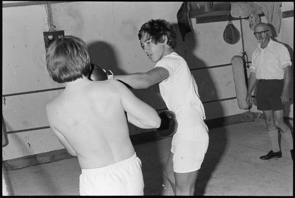 Date22 October 1975Reference Numberphoto gcc-36128DescriptionG. Borrell (left) and J. Eynon exchanging blows in the Tauranga Boys College boxing tournament. The referee is Mr G. Wilkinson. Published 22 October 1975FormatNegativePhysical Description35mm black-and-white negative (11/12)Photographer/CreatorBay of Plenty Times
