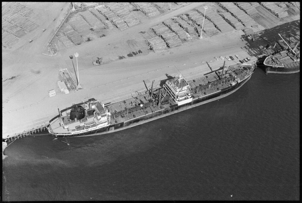 Date22 October 1975Reference Numberphoto gcc-36145DescriptionIn the Port of Tauranga is the tanker Hamilton, which is due to end her eight-year charter on the New Zealand coast when she finally clears the port once a dispute is settled. The photograph was taken from an aircraft of the Tauranga Aero Club. Published 22 October 1975.FormatNegativePhysical Description35mm black-and-white negative (1/3)Photographer/CreatorBay of Plenty Times