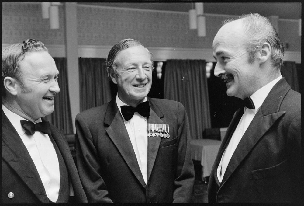 Date23 October 1975Reference Numberphoto gcc-36167DescriptionPictured at the Tauranga branch of the Navy League's annual Trafalgar Day dinner are: (from left) Lieutenant-Commander D. B. Herlihy (HMNZS Taupō), the president of the Tauranga branch, Mr K. F. Cochran, and the secretary, Mr A. H. Ellis. Published 23 October 1975FormatNegativePhysical Description35mm black-and-white negative (1/4)Photographer/CreatorBay of Plenty Times