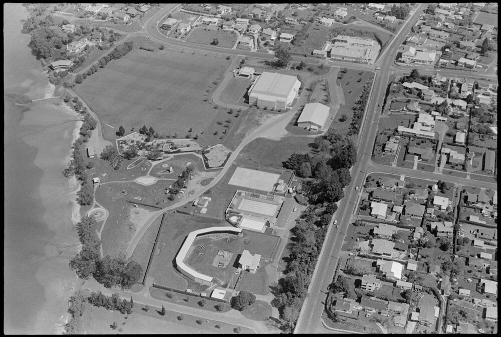 Date25 October 1975Reference Numberphoto gcc-36198DescriptionAn aerial view of Memorial Park, Devonport Road to its left. Taken from a Tauranga Aero Club aircraft. Published 25 October 1975FormatNegativePhysical Description35mm black-and-white negative (1/3)Photographer/CreatorBay of Plenty Times
