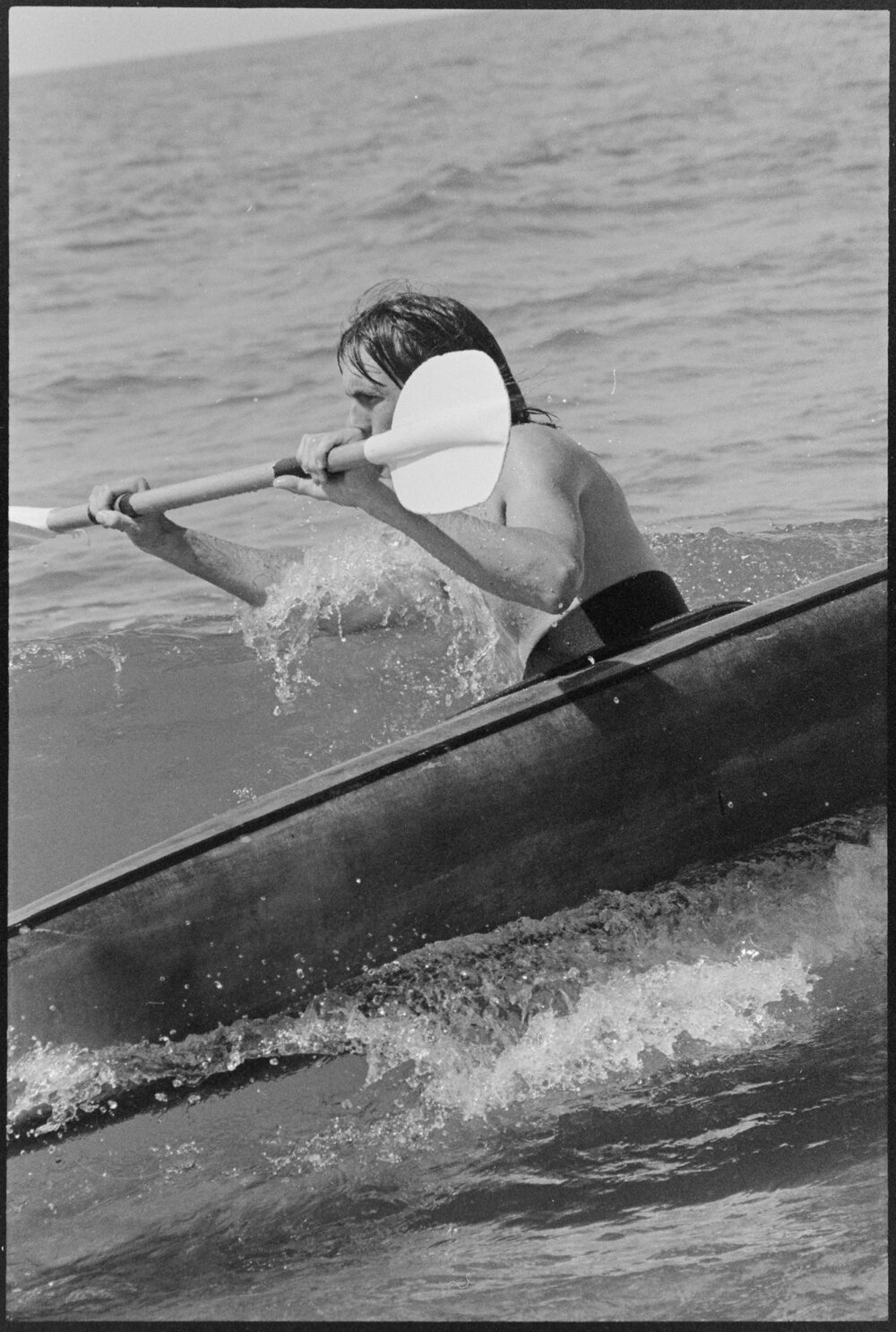 Date27 October 1975Reference Numberphoto gcc-36248DescriptionChris Haines surfs at Mount Maunganui with his canoe. Published 27 October 1975FormatNegativePhysical Description35mm black-and-white negative (6/9)Photographer/CreatorBay of Plenty Times