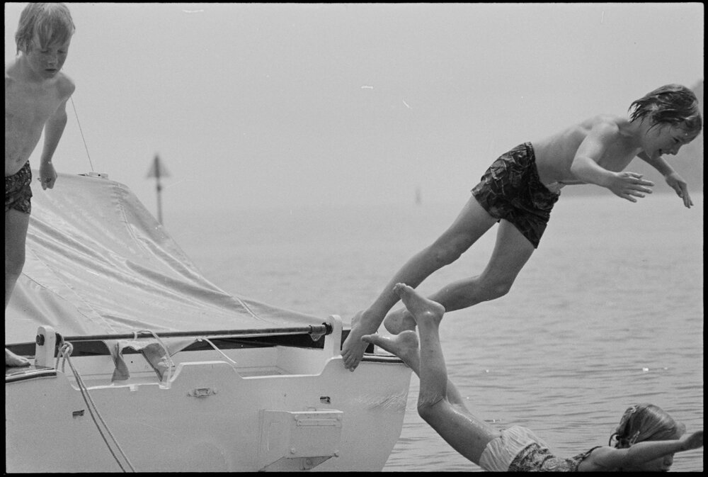 Date28 October 1975Reference Numberphoto gcc-36277DescriptionSnodgrass family of Ōhaupō, from left, Robyn, Kenneth and Richard, are diving from a moored boat at Ōtūmoetai. Published 28 October 1975. FormatNegativePhysical Description35mm black-and-white negative (1/3)Photographer/CreatorBay of Plenty Times