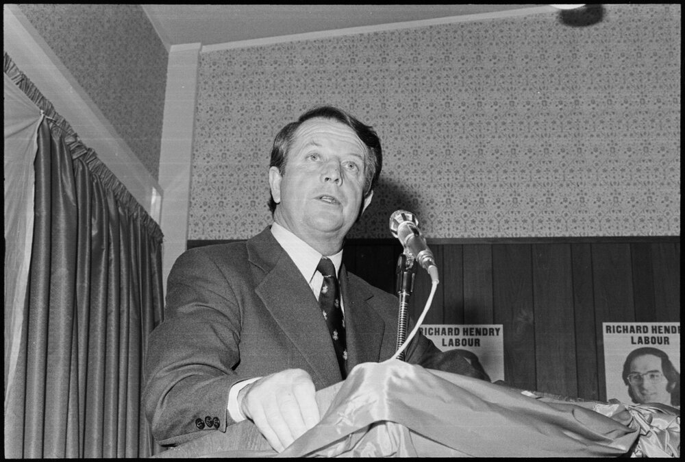Date30 October 1975Reference Numberphoto gcc-36345DescriptionPrime Minister Mr Rowling speaks to the large attendance at an election meeting. Published 30 October 1975.FormatNegativePhysical Description35mm black-and-white negative (2/6)Photographer/CreatorBay of Plenty Times