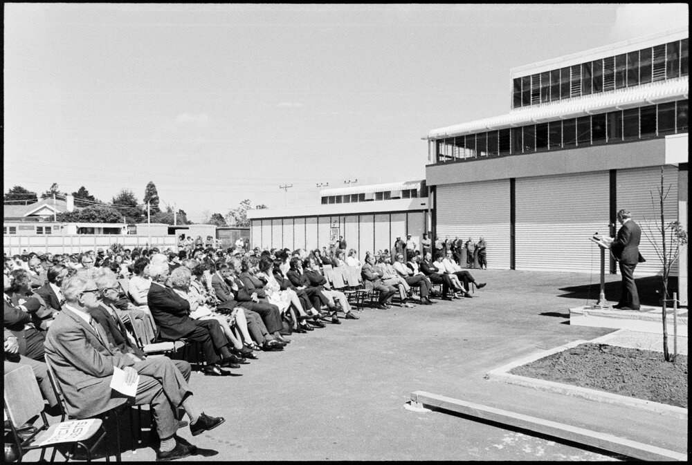 Date31 October 1975Reference Numberphoto gcc-36353DescriptionA crowd attended the Minister of Works, Mr Connelly, opening the new $738,000 Ministry of Works depot in Greerton. Published 31 October 1975.FormatNegativePhysical Description35mm black-and-white negative (1/5)Photographer/CreatorBay of Plenty Times