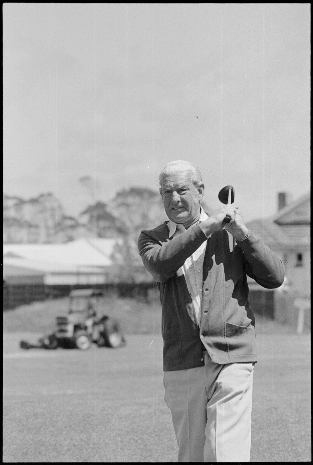 Date31 October 1975Reference Numberphoto gcc-36363DescriptionParticipant at the annual veterans match between the Mount Maunganui and Tauranga golf clubs. 31 October 1975.FormatNegativePhysical Description35mm black-and-white negative (1/12)Photographer/CreatorBay of Plenty Times